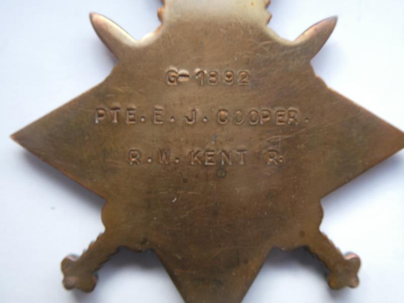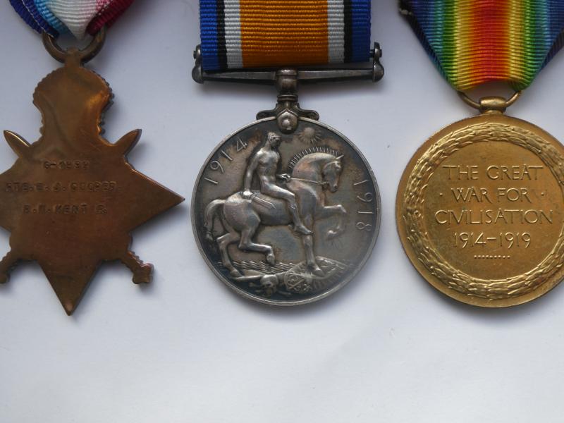 1914/15 STAR TRIO-TO COLOUR SGT COOPER-ROYAL WEST KENT REGIMENT