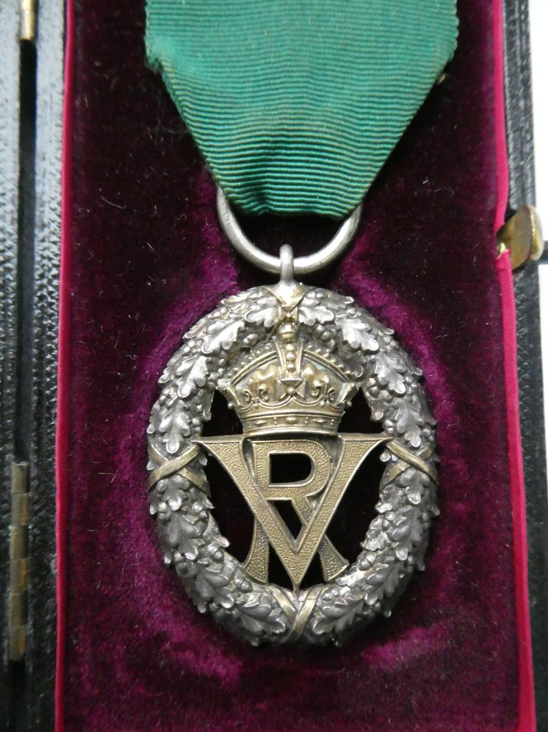Volunteer Decoration,with original top clasp and pin, in original Garrard box. Hallmarked Sebastion Garrard, 1892/3 In good order, with most of the original gilding intact.