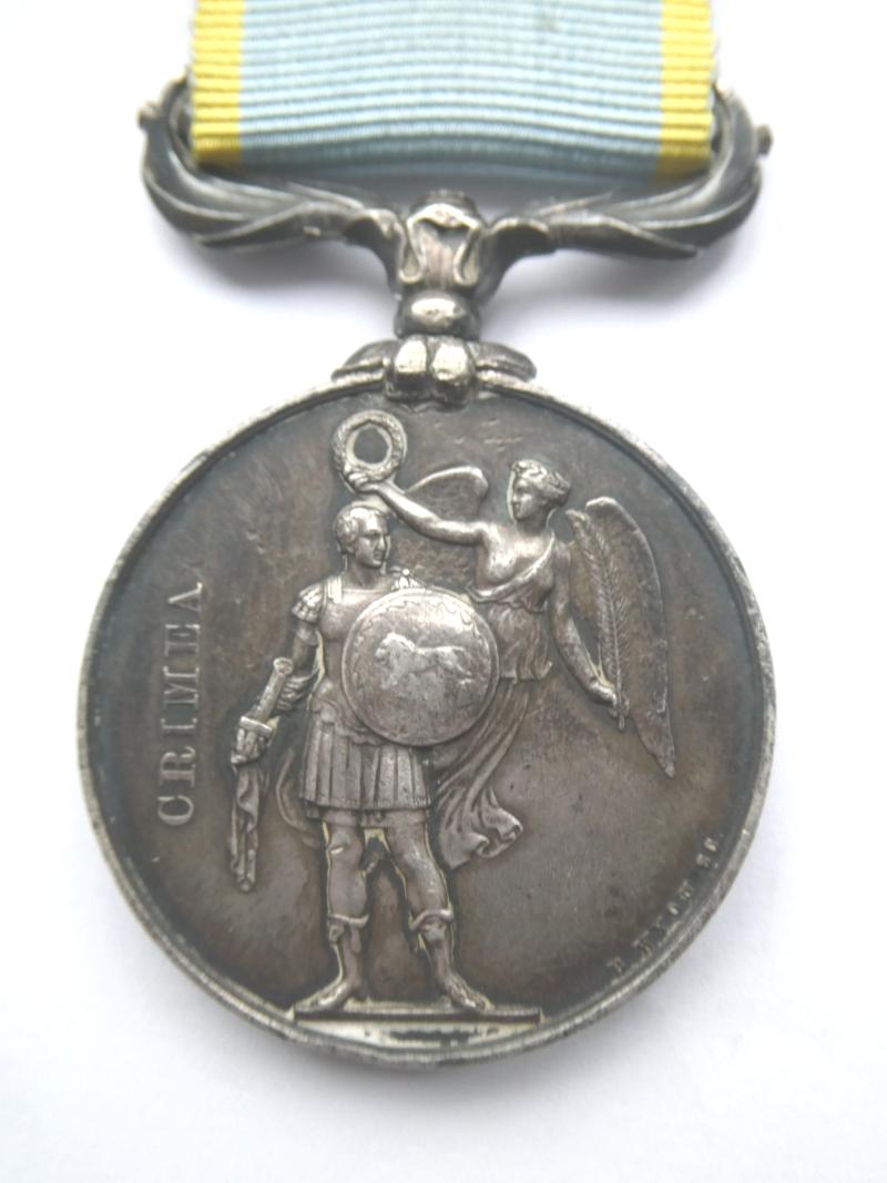 Crimea Medal, unnamed as issued to The Royal Navy and Royal Marines Medal about very fine, dark toned Susp may have been re-fixed,edge bruise.