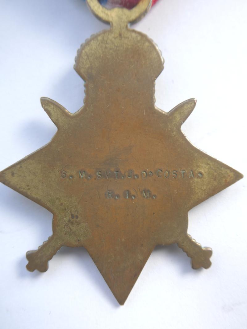 1914/15 Star, named to: G.M.SVT.J.D'COSTA R.I.M.(Royal Indian Marine) Medal very fine, gilded at some time. Scarce