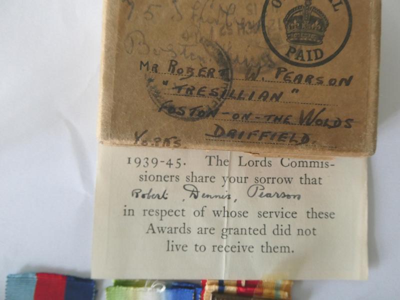 With Admiralty slip named to: Robert Denis Pearson, and box of issue,named to: Mr Robert W Pearson "TRESILLIAN" Foston-On The-Wolds, Driffield, Yorkshire.