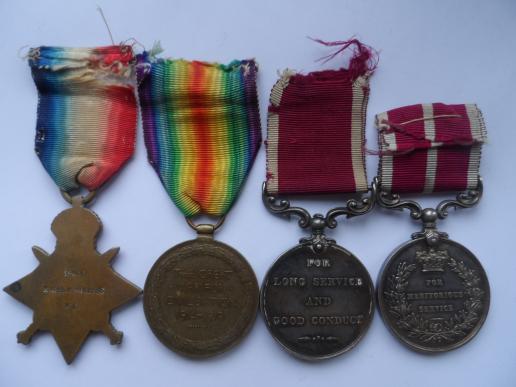 Medals very fine to extremely fine,with a little contact wear on WWI and Long Service Medal.(BWM Missing)