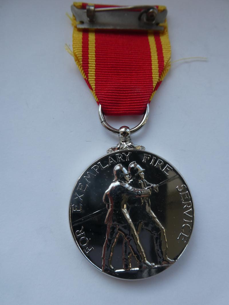 Fire Brigade Exemplary Service Medal ( Rhodium plated cupro-nickel version.