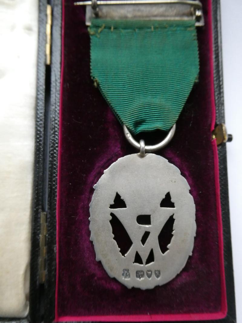 Volunteer Decoration,with original top clasp and pin, in original Garrard box. Hallmarked Sebastion Garrard, 1892/3 In good order, with most of the original gilding intact.