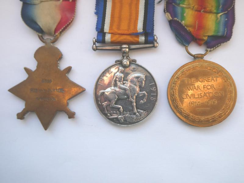 1914 Star trio,named to: 9556 PTE.J.H.BURTON 1/WORC .R. Medals very fine, on original silk ribbons Arrived in France on 05/11/1914 Served with the 1st and 9th Worc Regt