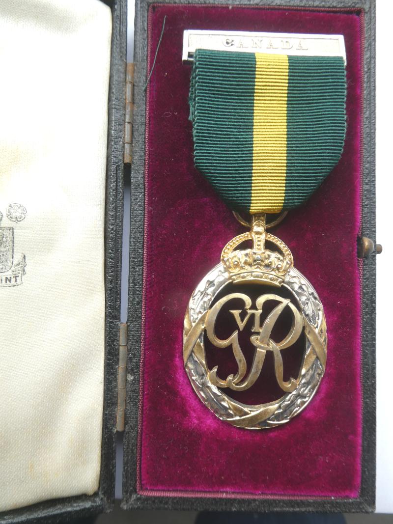 Territorial Decoration (George VI) dated 1949 with CANADA top clasp (loose on ribbon) in Royal Mint box of issue. Gilding a little worn, case a little rubbed, Scarce